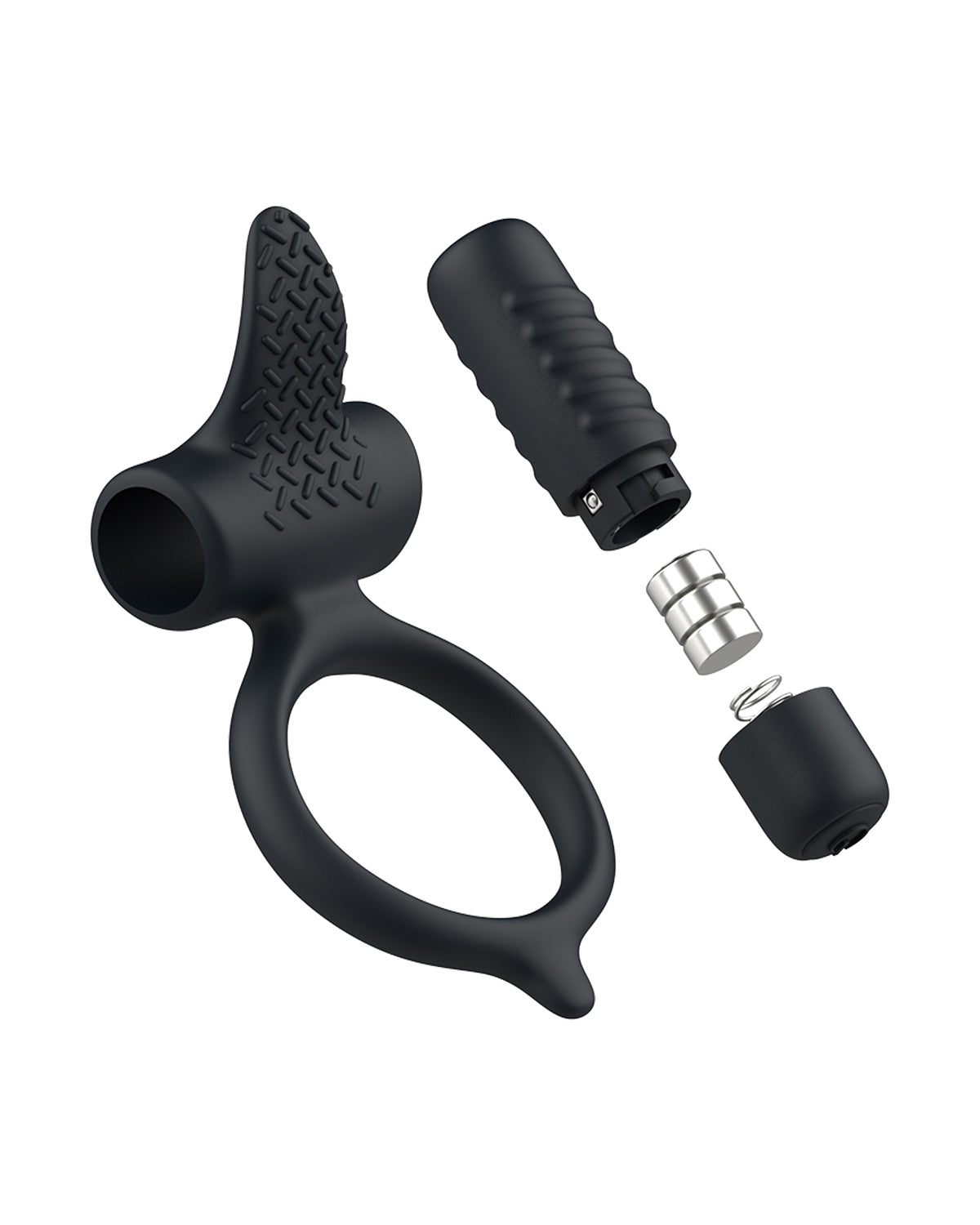 W górnej części obręcz z wibrującym pociskiem oraz wypustka w kształcie języczka. Pokryta jest ona drobnymi wypustkami, które dodatkowo masują.