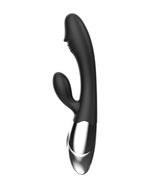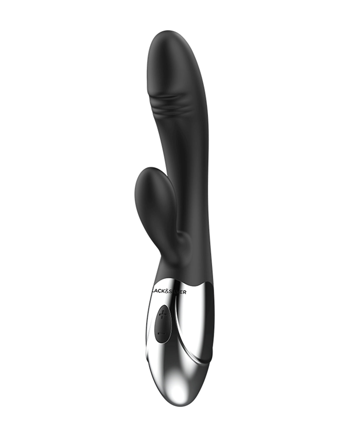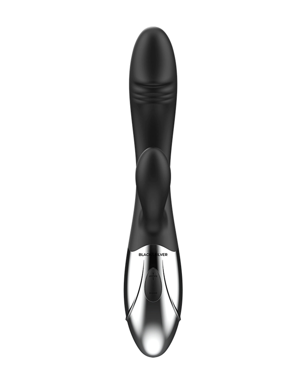 WIbrator w kolorze klasycznej, matowej czerni z gustowną, srebrną rączką.