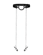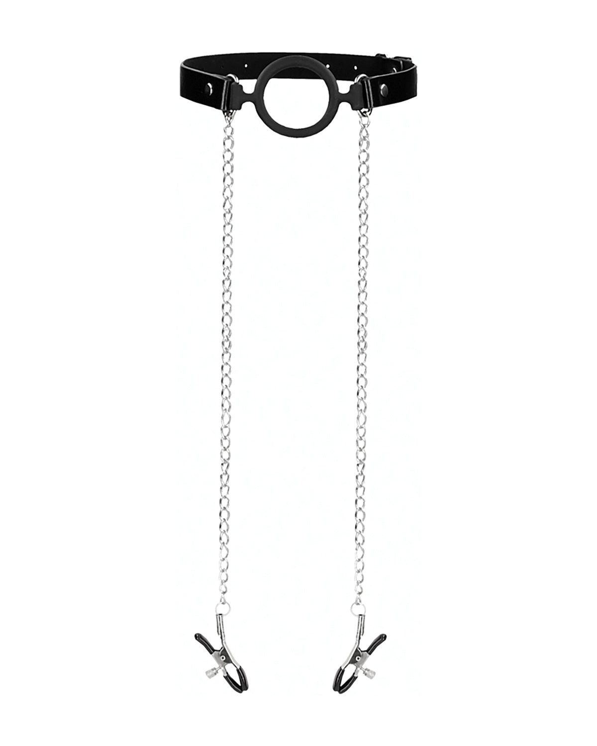 Szukasz akcesorium BDSM, które pobudzi wszystkie zmysły i całkowicie podporządkuje partnera Twojej woli? Otwarty knebel z klamerkami na sutki od Ouch! to gadżet, który łączy klasyczną dominację z elementami wizualnej prowokacji. Dzięki pierścieniowi ust Twój partner nie będzie mógł zamknąć ust, a łańcuszki z regulowanymi klamerkami na sutki dodają pikanterii i wzmacniają doznania.
