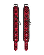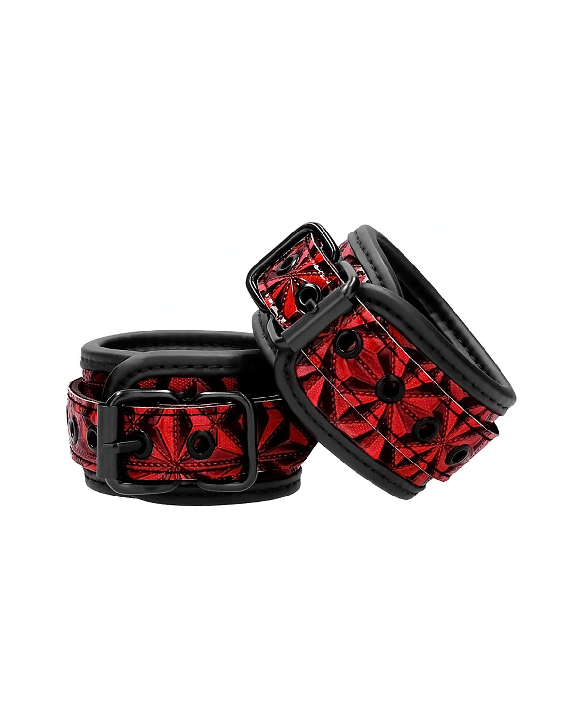 ✔ Styl i komfort - burgundowe kajdanki wykonane są z miękkiego neoprenu i pokryte błyszczącym winylem z geometrycznym wzorem. Nie tylko prezentują się luksusowo, ale są także wygodne i bezpieczne w noszeniu.