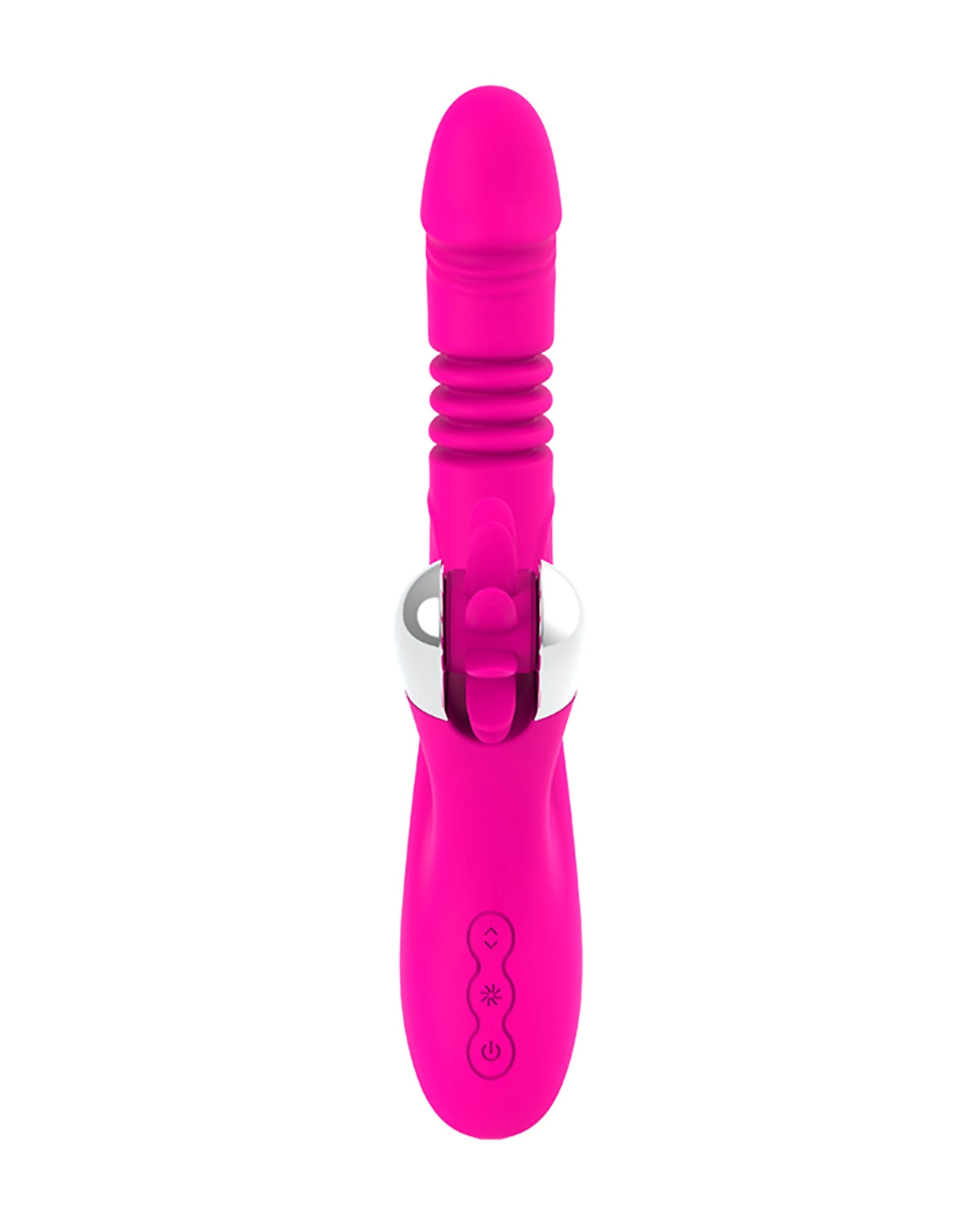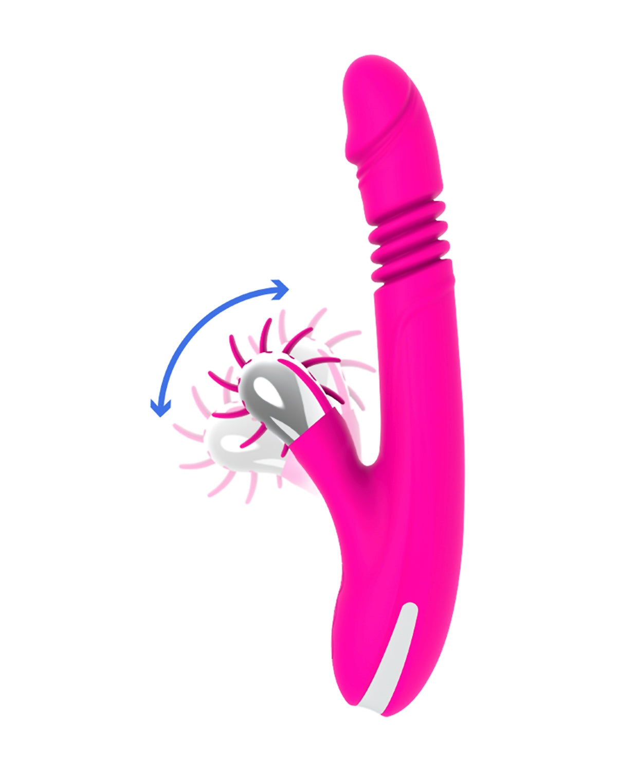Dwufunkcyjny wibrator, który jednocześnie masuje wszystkie wrażliwe, kobiece strefy. Pobudzi łechtaczkę, punkt G oraz wnętrze pochwy w tym samym czasie.