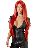 Peruka o gęstych, błyszczących włosach w kolorze ognistej czerwieni. Prezentuje się naprawdę oryginalnie.