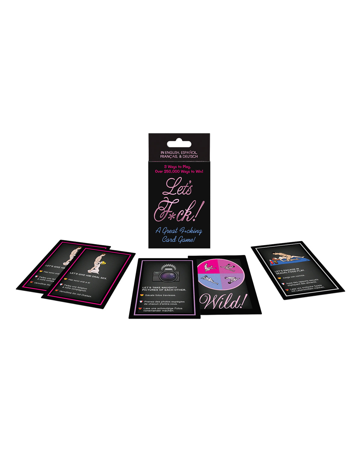 The quick and easy game that gets you laid! Includes 48 Let’s F… Cards, 4 Let’s Fck Wild Cards, and rules for 3 games: Fck Fortunes, Match & Fck, and Personal Fck Questions. One size fits most.