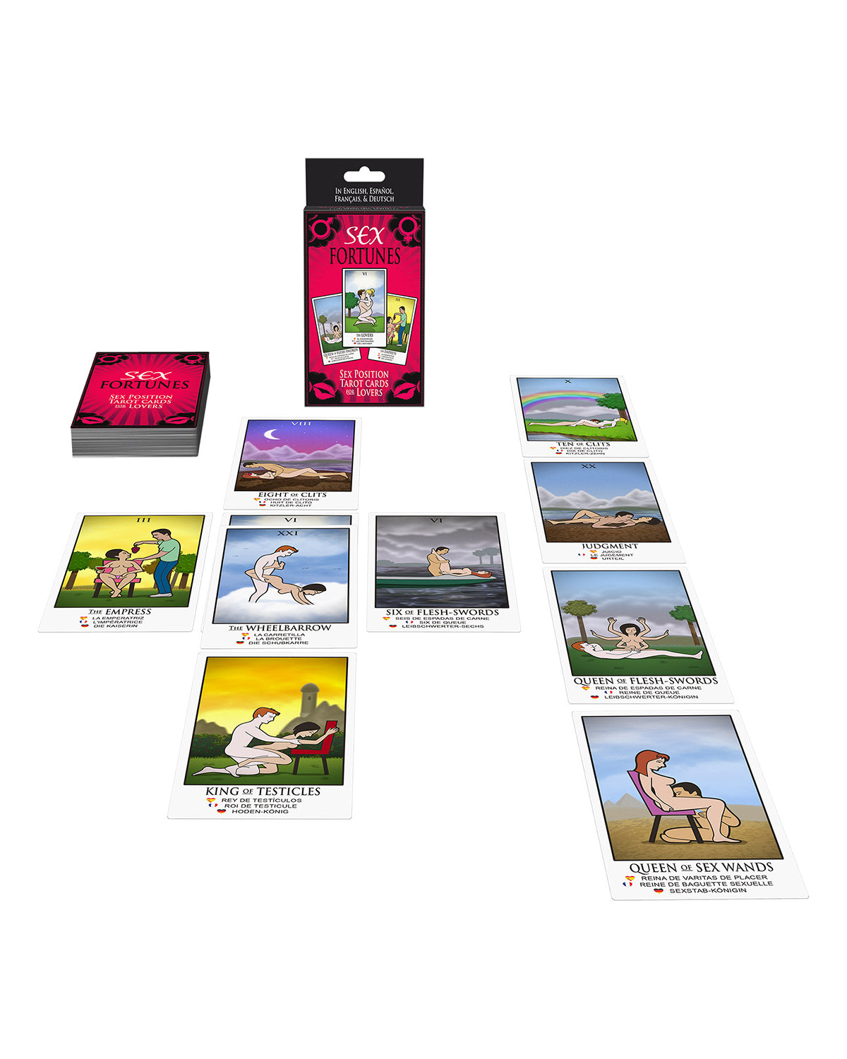 Mystify your lover by accurately predicting tonight’s sexual future with Sex Fortunes. Deal out your lover’s 10 card fortune as a fortune teller would, then act out the fortunes he or she wants to come true. Includes 78 Sex Fortune Cards and an illustrated instruction booklet.