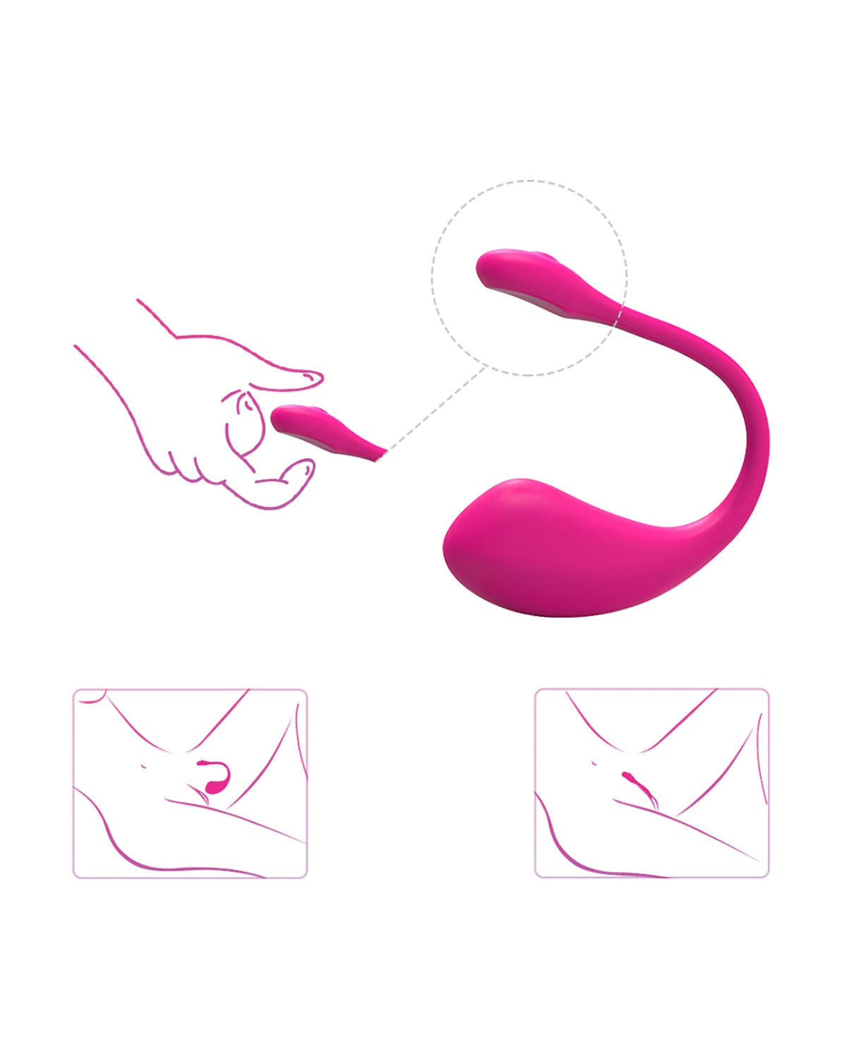 Uruchom jajeczko przyciskiem umieszczonym na końcu uchwytu. Włóż jajeczko tak, aby cienki uchwyt pozostał na zewnątrz (jak podczas używania tamponu). Uruchom aplikację na telefonie (jest ona darmowa dla użytkowników Android oraz Apple). Zmieniaj funkcje, baw się opcjami, aż do osiągnięcia orgazmu. Możesz także użyć funkcji głosowej.