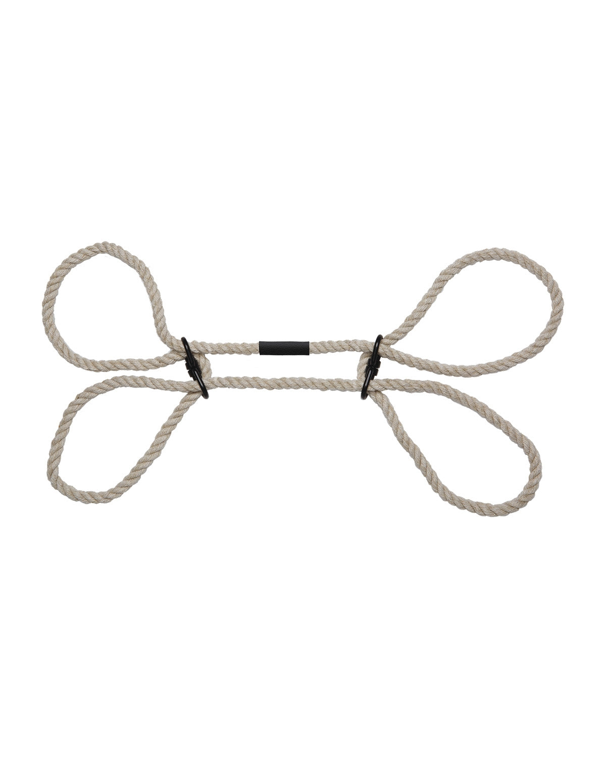 Wytrzymała, ale delikatna dla skóry lina pozwala na szeroką personalizację - możesz łatwo dostosować długość i intensywność krępowania. Metalowe elementy są bezpieczne i obracają się, zapewniając swobodę ruchu oraz łatwe zdejmowanie. Doskonale sprawdzają się jako kajdanki na ręce lub nogi.