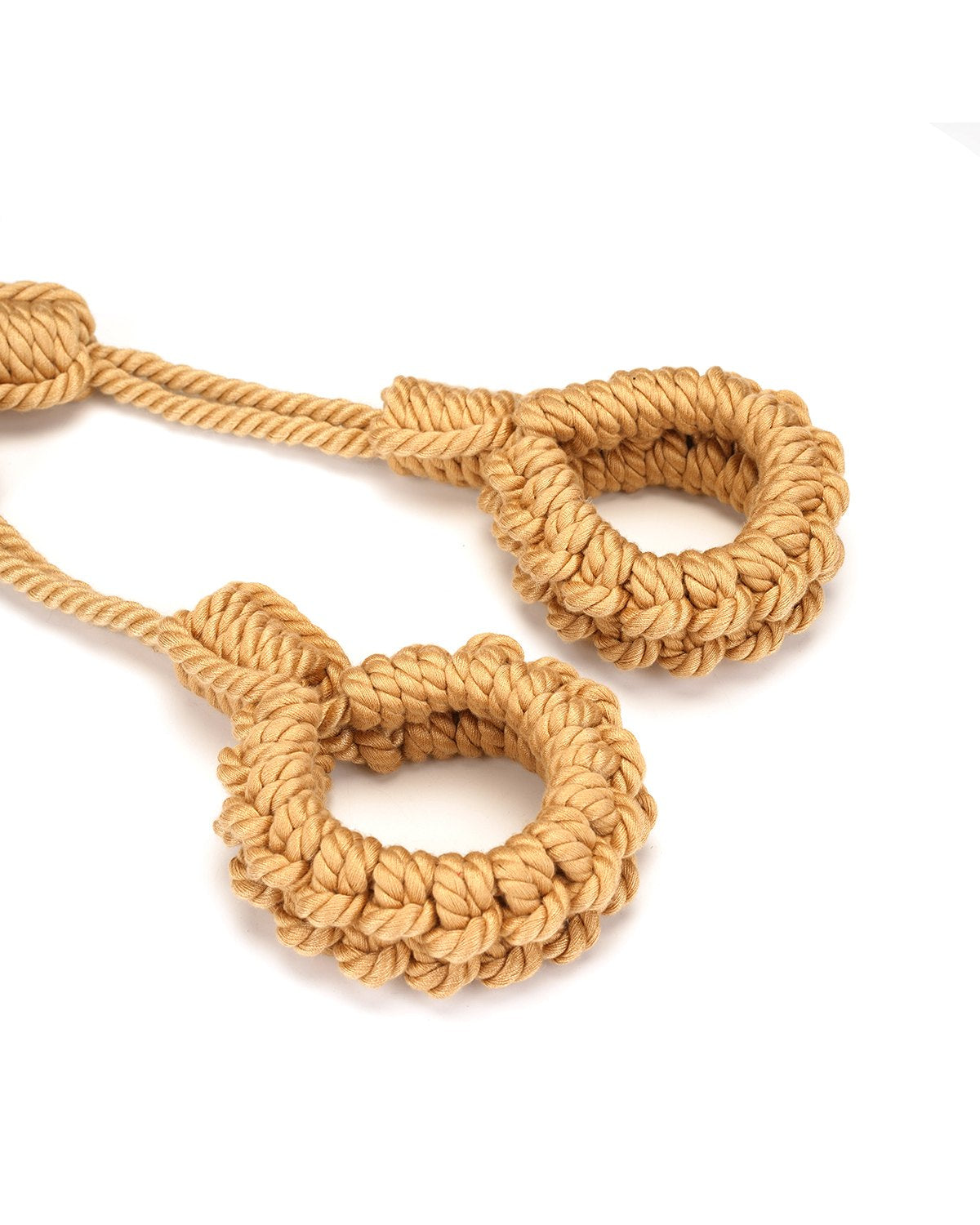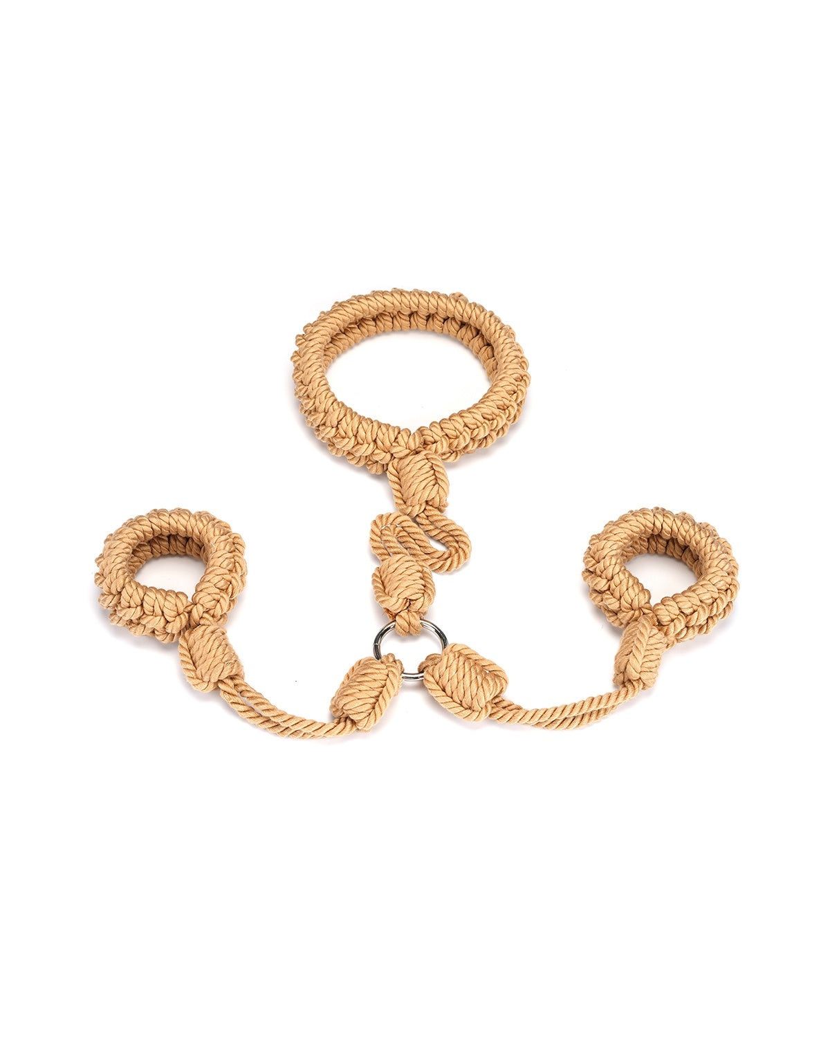 Wzbogać swoje sesje BDSM dzięki Shibari Wrist-to-Collar Restraint marki Liebe Seele - wyjątkowemu zestawowi kajdanek połączonych z obrożą, inspirowanemu tradycyjną sztuką Shibari. Wykonane z plecionego bawełnianego sznura, kajdanki i obroża są jednocześnie wytrzymałe i delikatne dla skóry, zapewniając komfort nawet podczas dłuższych sesji.
