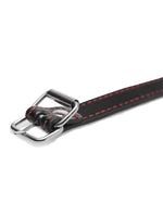 Paski miękkie i przyjemne, wyłożone od środka aksamitnym materiałem. Ozdobione czerwonym, kontrastującym szwem. Z tyłu regulacja obwodu klamrą.