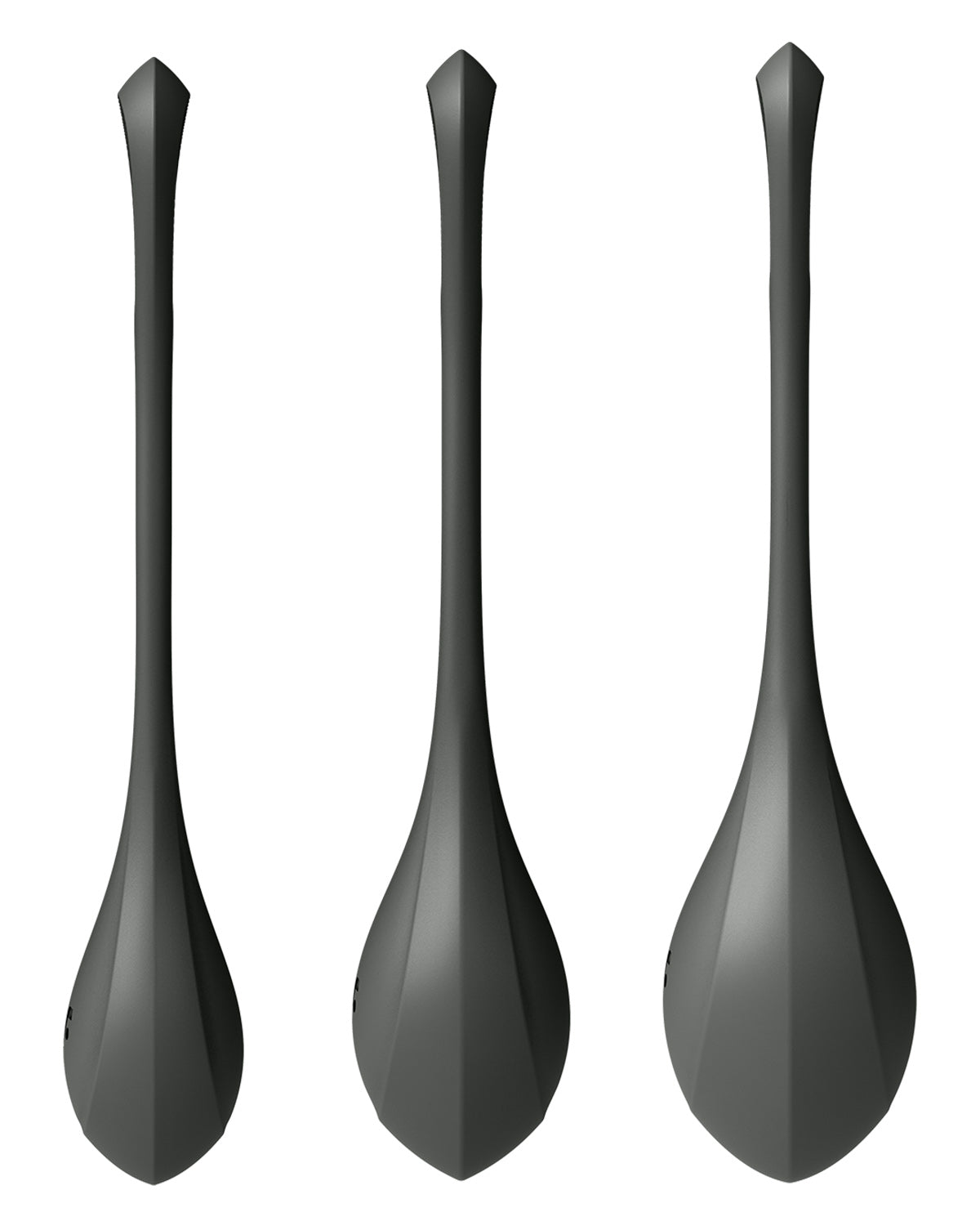 Komplet służy do progresywnego ćwiczenia mięśni dna miednicy, popularnie nazywanych Mięśniami Kegla.