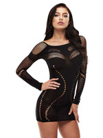 Sukienka mini wykonana z elastycznej siateczki w kolorze czarnym. Idealnie opina ciało prezentując walory sylwetki.
