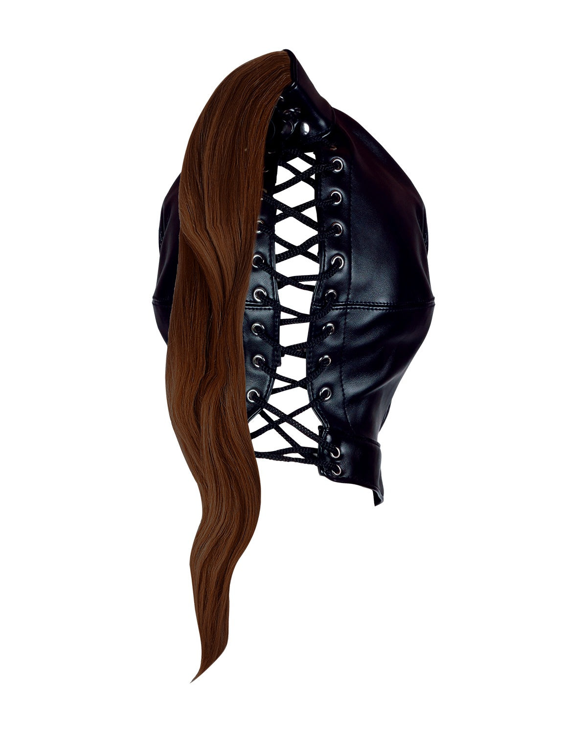 - długi brązowy kucyk: Maska wyposażona jest w długi, brązowy kucyk wykonany z wysokiej jakości włókien syntetycznych, który nadaje jej nieodparty, zmysłowy wygląd. Kucyk jest przymocowany do góry maski, co dodaje jej niezwykłego charakteru.