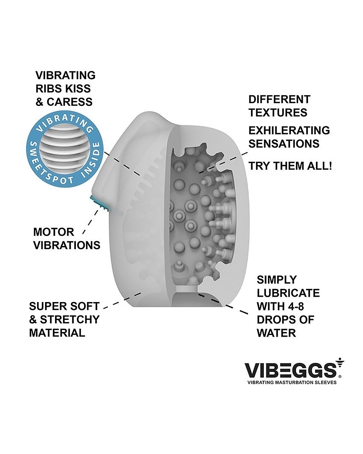 Odkryj nowy wymiar przyjemności z Naughty Nubs marki Vibeggs - innowacyjnym, wibrującym jajkiem masturbacyjnym, które zapewnia intensywną stymulację. Dzięki unikalnej teksturze pokrytej setkami miękkich wypustek, doznania są niezwykle intensywne i pobudzające.