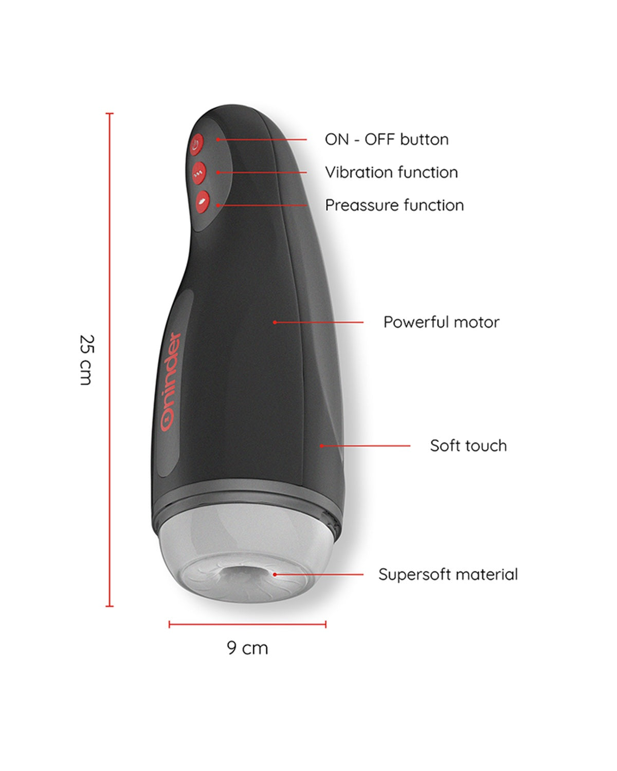 Oninder Seoul to zaawansowany technologicznie masturbator męski w eleganckim, czarnym designie, stworzony, by dostarczyć niezapomnianych doznań. Wyposażony w 10 prędkości wibracji i 10 funkcji nacisku, sterowanych intuicyjną aplikacją mobilną, pozwala na pełne dostosowanie intensywności i rytmu do Twoich potrzeb.
