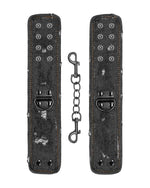 Kajdanki łączone 15 cm łańcuszkiem ze stali nierdzewnej, który dopinany jest przy pomocy karabińczyków. Można je spiąć razem lub podpiąć do innych elementów, które posiadamy.