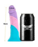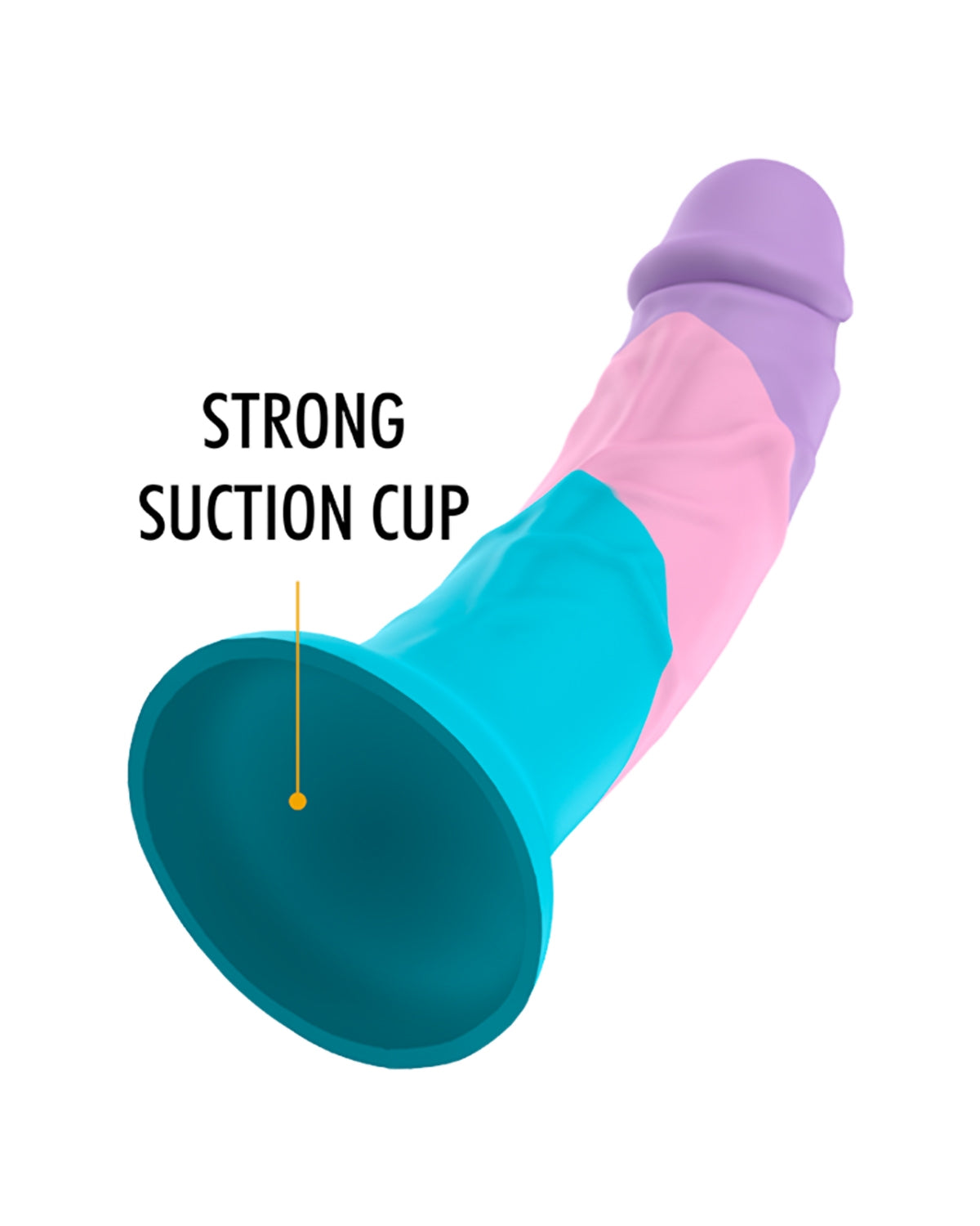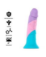 Dildo w kolorach pastelowych - fiolet, róż, niebieski. To połączenie kolorystyczne dodaje modelowi wyjątkowego, optymistycznego charakteru.