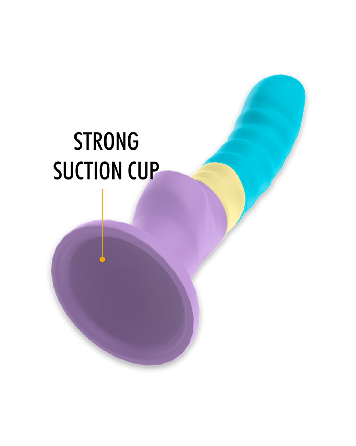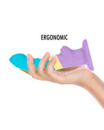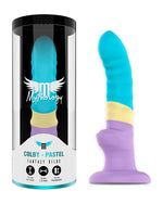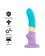 Dildo w kolorach pastelowych - fiolet, niebieski, żółty. To połączenie kolorystyczne dodaje modelowi wyjątkowego, optymistycznego charakteru.