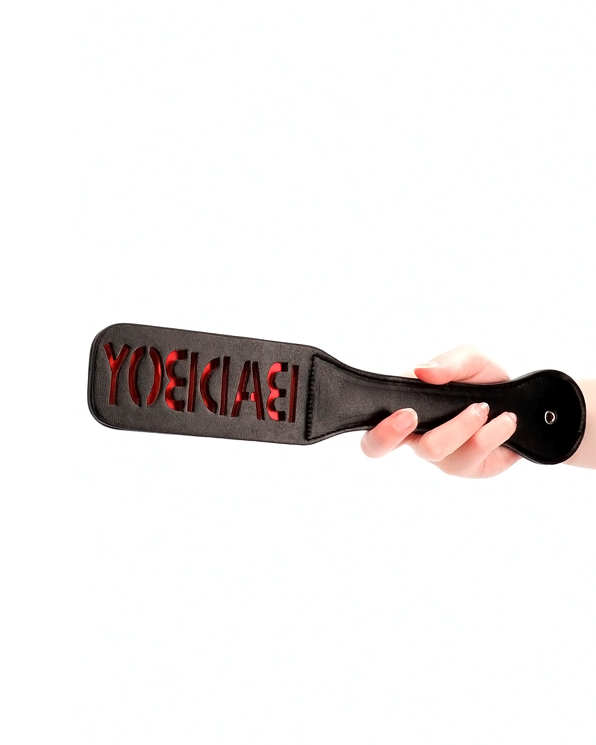 Podkręć atmosferę zmysłowej gry i dominacji z packą BAD BOY - akcesorium BDSM zaprojektowanym z myślą o intensywnych doznaniach i wizualnej ekspresji. Kontrastowy czerwony napis „BAD BOY” wytłoczony po wewnętrznej stronie może odcisnąć się na skórze po uderzeniu, dodając każdej scenie pikanterii. Solidne wykonanie z elastycznej skóry syntetycznej zapewnia komfort i kontrolę - niezależnie od tego, czy używasz jej do subtelnych muśnięć, czy bardziej zdecydowanej gry.