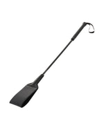 Precyzyjna dyscyplina w eleganckim wydaniu - ta czarna szpicruta BDSM o długości 53 cm to niezawodne narzędzie dominacji, które sprawdzi się zarówno w subtelnych scenariuszach uległości, jak i w intensywniejszych sesjach D/s. Wyposażona w szeroką, miękką końcówkę z PVC oraz elastyczny trzon, zapewnia doskonałą kontrolę nad siłą uderzenia. Gumowany uchwyt z teksturowanym wykończeniem gwarantuje stabilność nawet podczas dynamicznych ruchów, a pętla zabezpieczająca zwiększa bezpieczeństwo użytkowania.