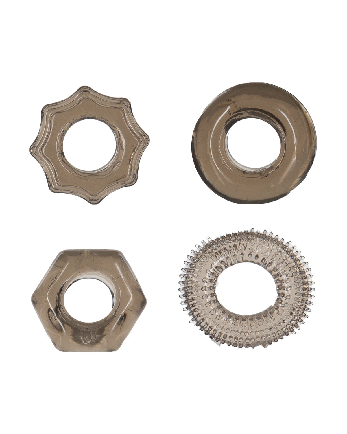 Komplet czterech pierścieni erekcyjnych o różnym kształcie.