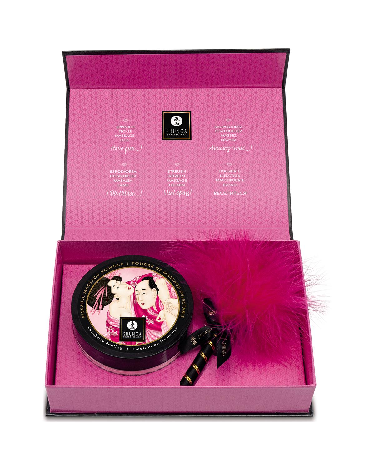 Shunga Kissable Massage Powder puder do masażu i erotycznych pocałunków o smaku maliny