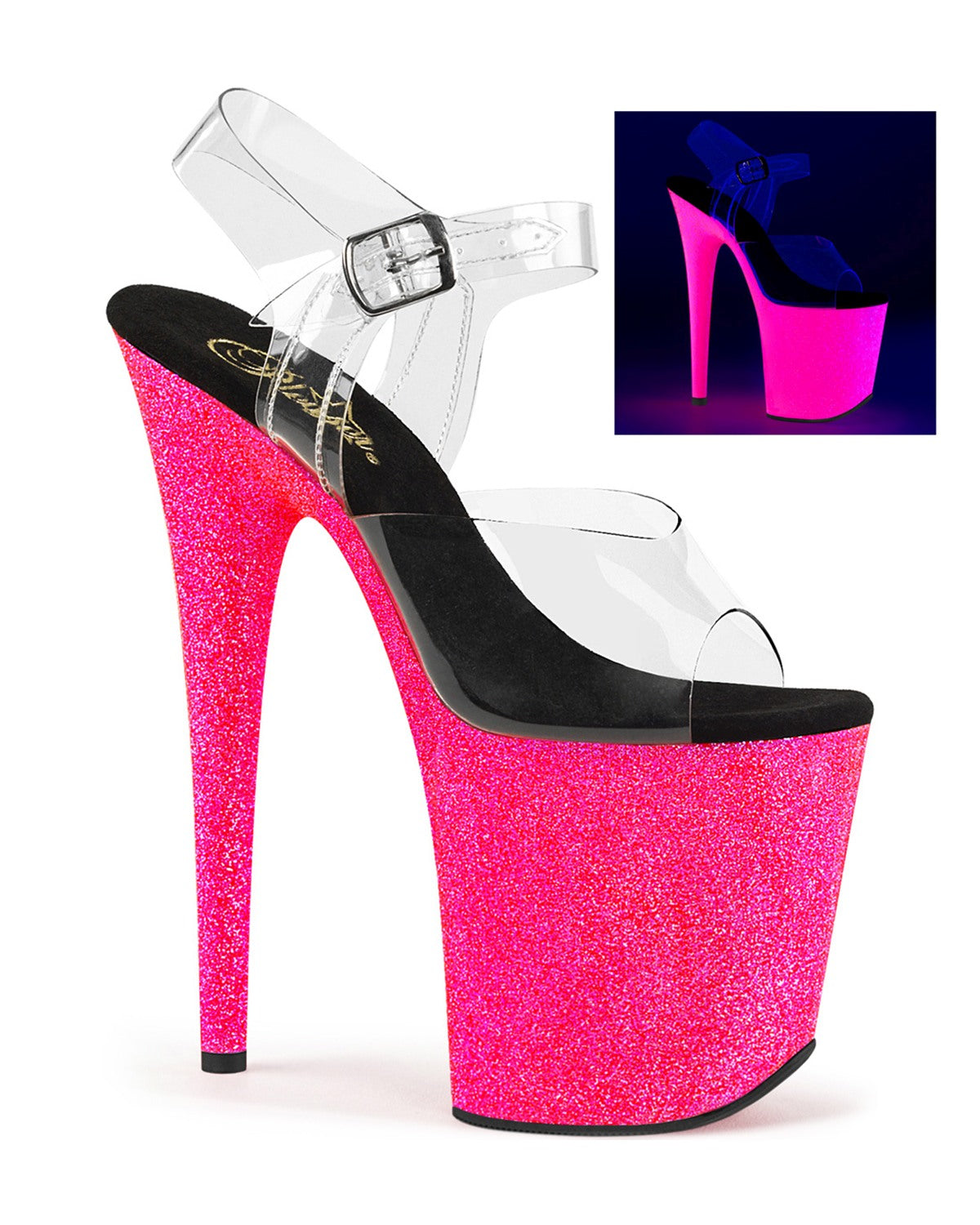 Platforma ozdobiona różowym, mieniącym się pyłkiem. Cała platforma świeci się w ultrafiolecie.