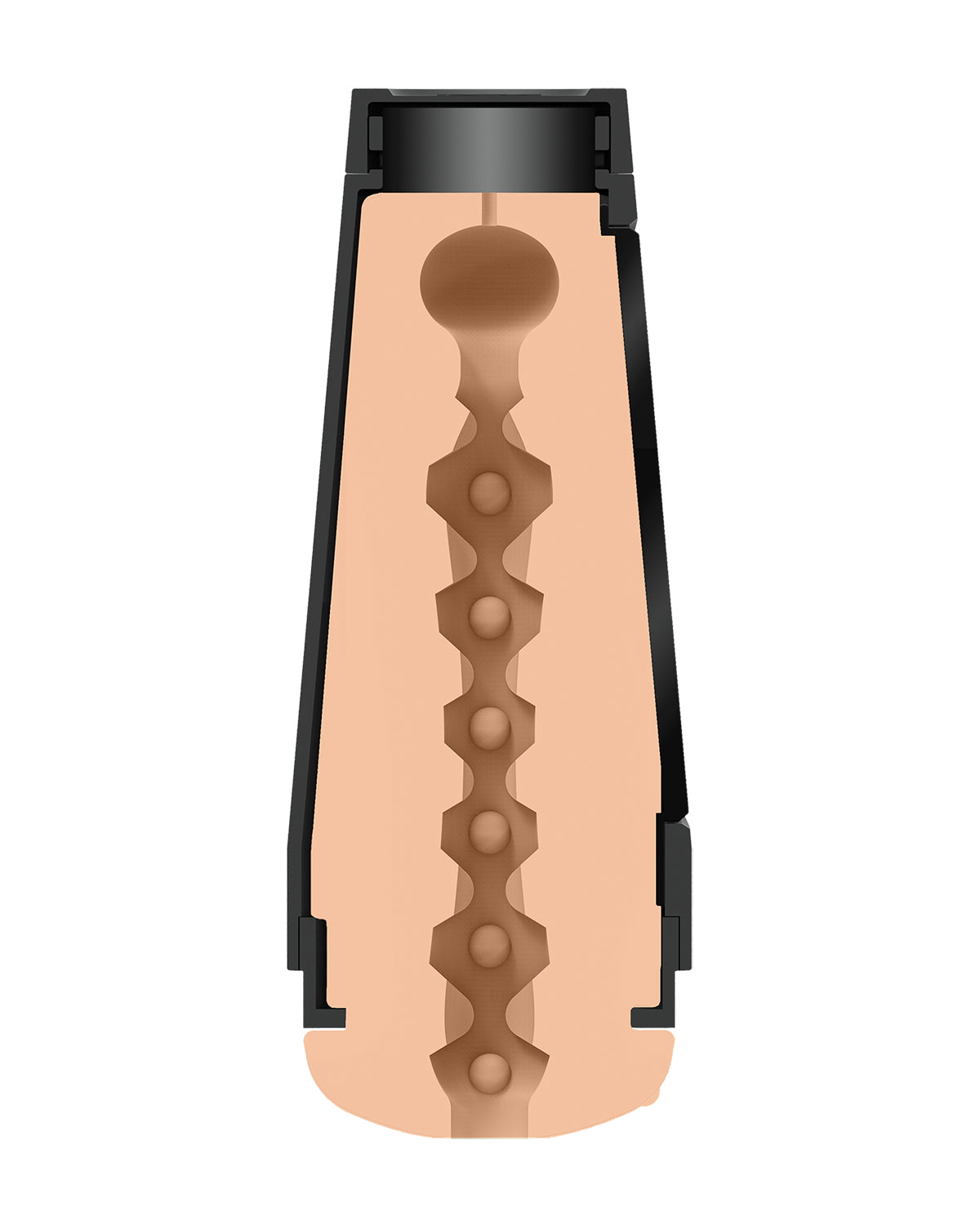 Wnętrze stanowi wkład wykonany z niezwykłego materiału imitującego ludzka skórę - ULTRASKYN. Jest on miękki, elastyczny i ciasno obejmuje penisa. Wnętrze pokryte wypustkami i zwężeniami, które masują i pobudzają.