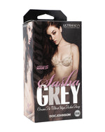 Tunel okalają bardzo naturalne wargi sromowe. Jest to naturalny odlew Sashy Grey, więc doznania są bardzo realistyczne.