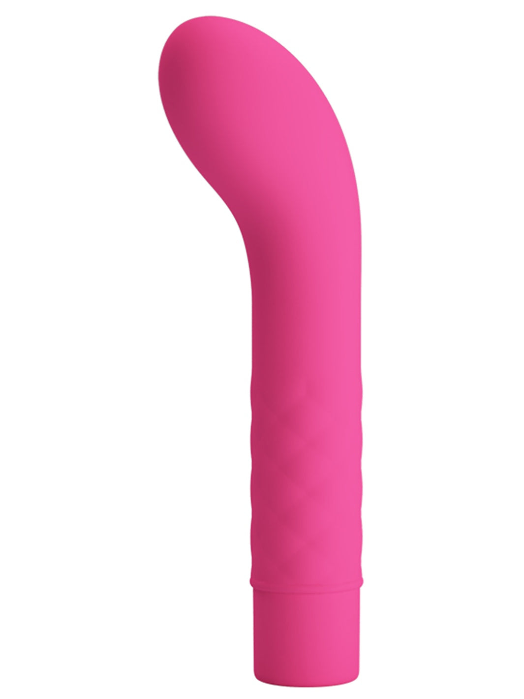 Poręczny i praktyczny wibrator z wyraźnie zakrzywioną główką.