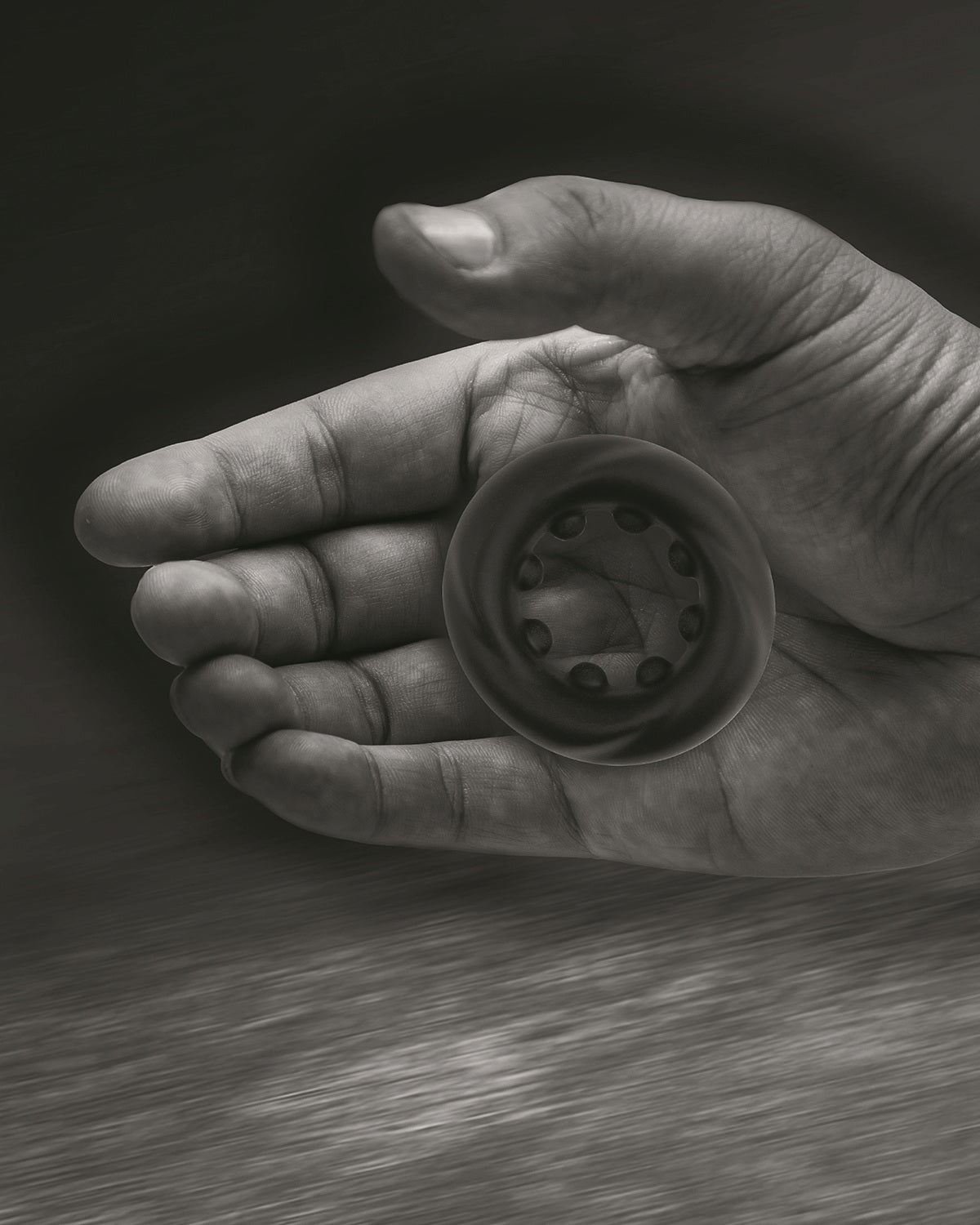 Strona wewnętrzna pokryta perforacją, która jeszcze pewniej i mocniej naciska na penisa. Na zewnątrz delikatny falowany wzór.