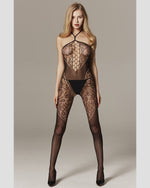 Kombinezon o dwóch strukturach, jedna gładka w formie maleńkich oczek, druga bardziej ozdobna z kwiatowym wzorem. Przód zdobi pas większych oczek biegnących pomiędzy piersiami.