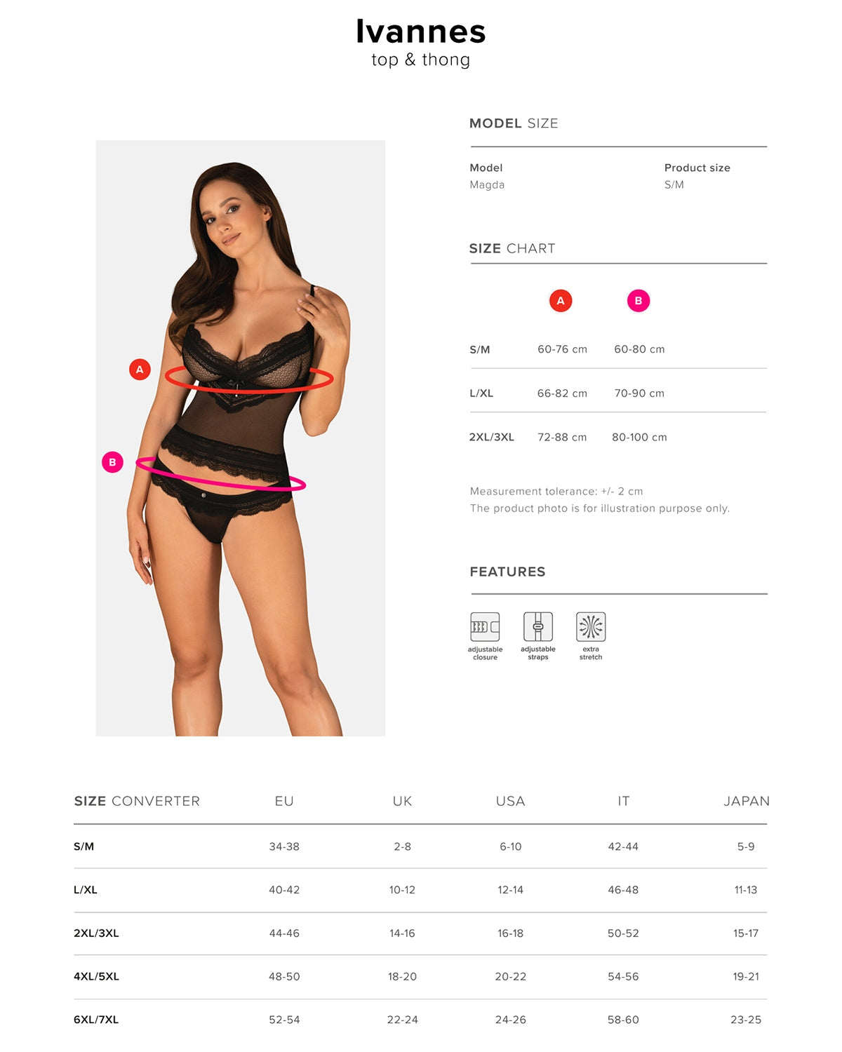 Komplet 2-częściowy prześwitujący top i stringi Ivannes