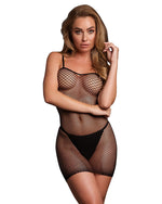 Zmysłowa i elastyczna sukienka Camila od Le Désir to połączenie prostoty i seksapilu. Krój mini, cienkie ramiączka spaghetti i wzór z drobnej siateczki tworzą uwodzicielski look, który delikatnie opina ciało i podkreśla kształty. Elastyczne obszycia przy dekolcie i ramionach zapewniają wygodne dopasowanie, a miękki materiał sprawia, że możesz nosić ją z przyjemnością przez wiele godzin - solo lub jako część erotycznej stylizacji.