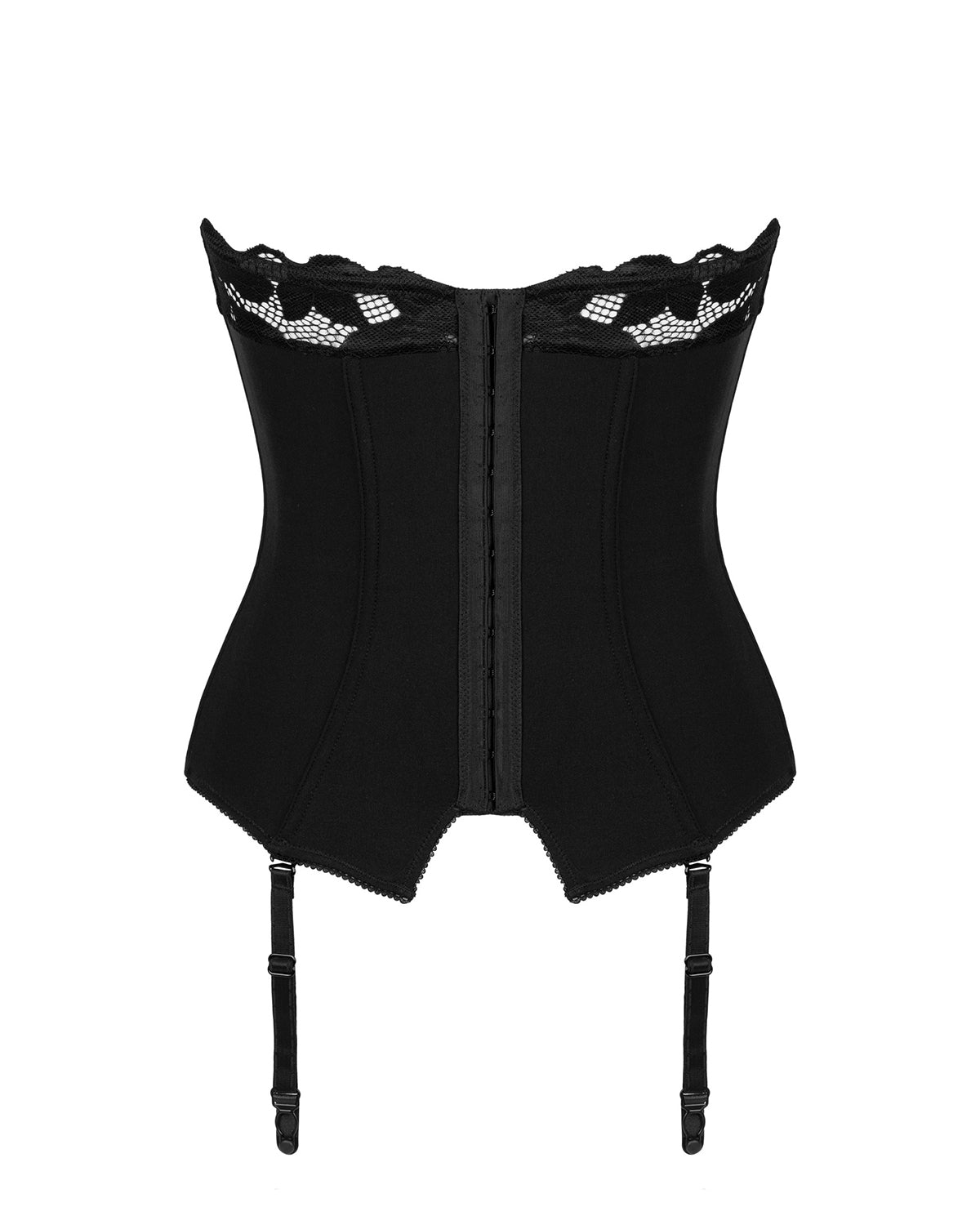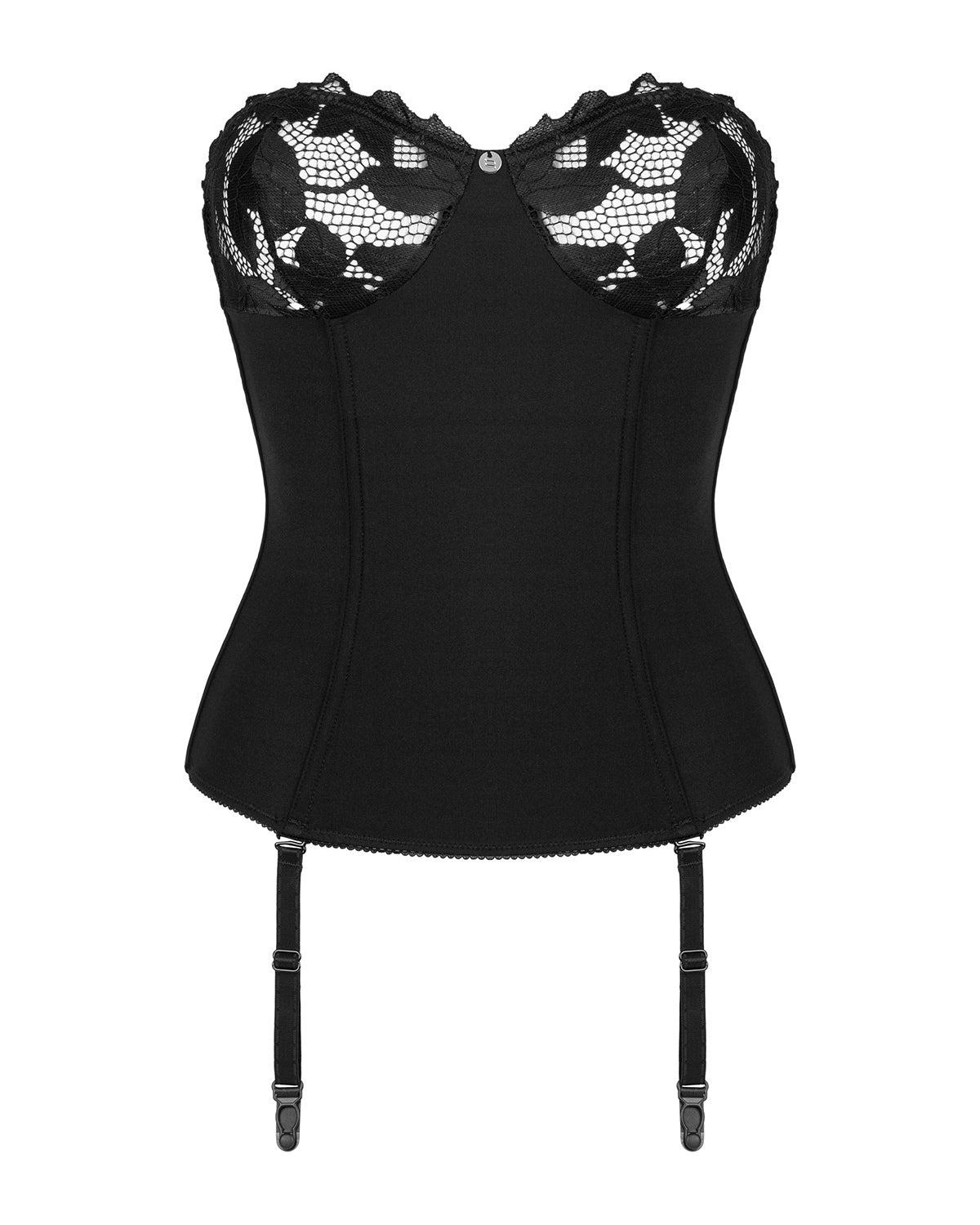Niezwykle seksowny gorset wykonany z miękkiej, kryjącej tkaniny o matowym wykończeniu.