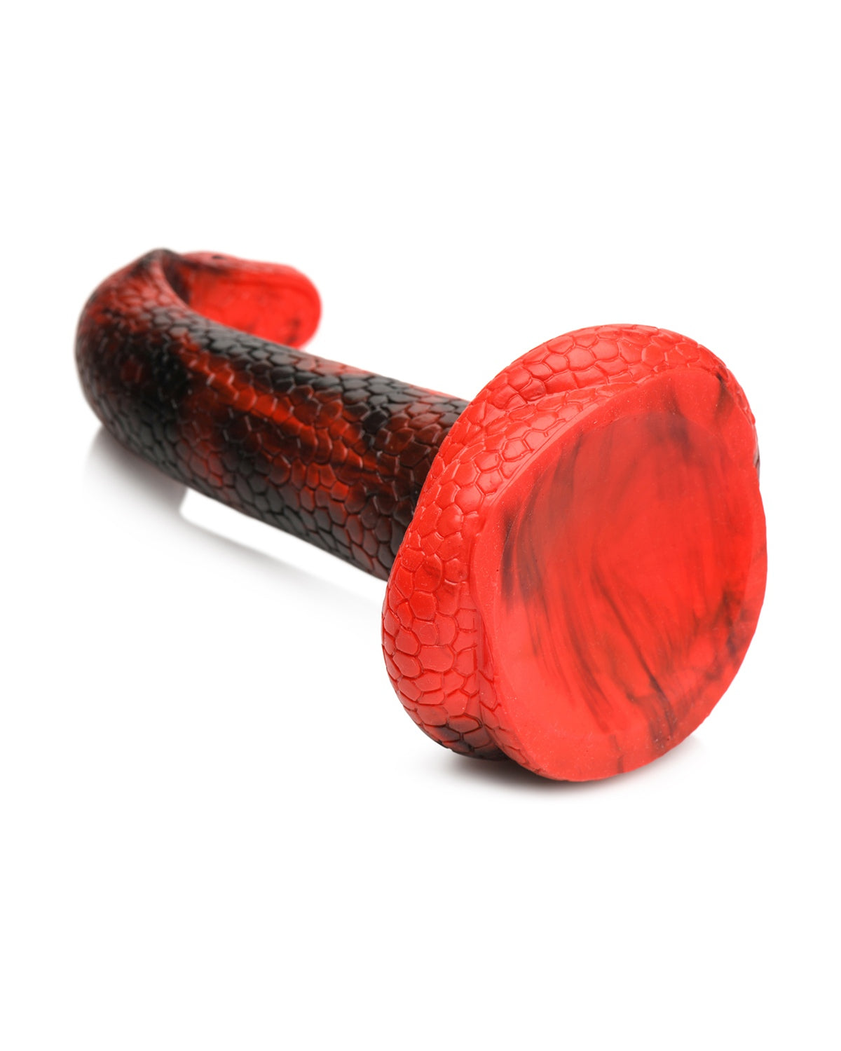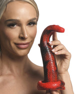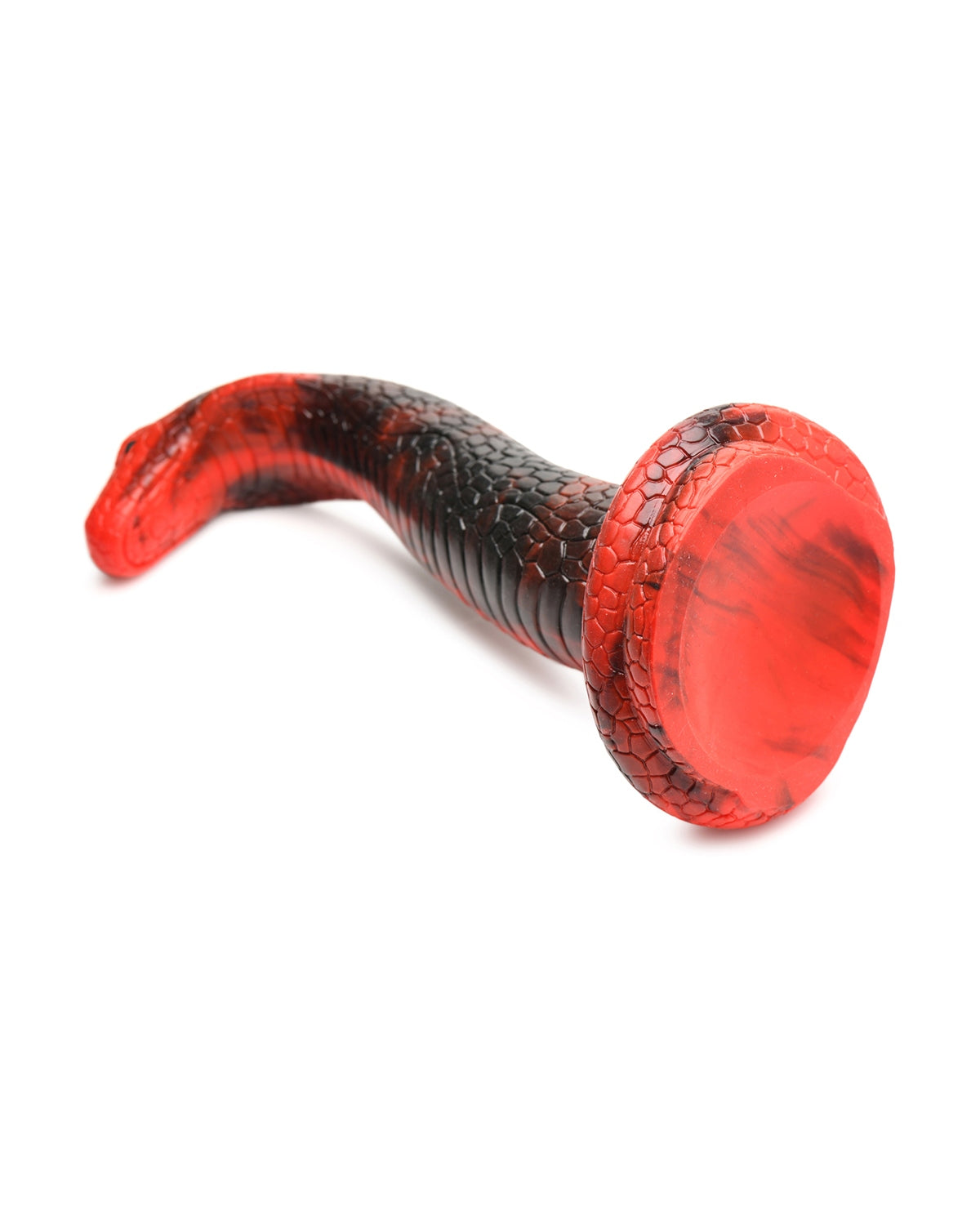 Poznaj tajemniczą i hipnotyzującą moc King Cobra - dildo inspirowane kształtem węża, które zapewni Ci zupełnie nowe doznania. Jego smukła, zwężająca się końcówka ułatwia penetrację, podczas gdy tekstura łusek i zakrzywiony kształt intensyfikują przyjemność. Czerwono-czarna kolorystyka nawiązuje do mitycznych wężowych bóstw i orientalnych legend o uwodzeniu.