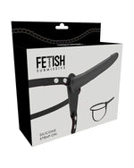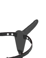 Dildo umieszczone jest na szerszych paskach wykonanych z wegańskiej skóry. Forma jednego paska biegnącego pomiędzy pośladkami oraz drugiego wokoł bioder. Oba paski posiadają regulację długości wygodną klamrą, dzięki czemu możesz dopasować wielkość do własnych potrzeb.