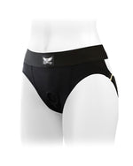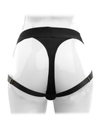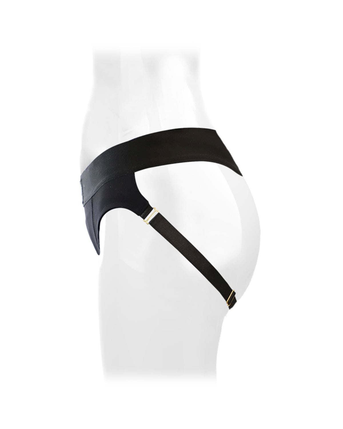 Praktyczna i bardzo ładnie wykonana uprząż w formie czarnych majteczek.