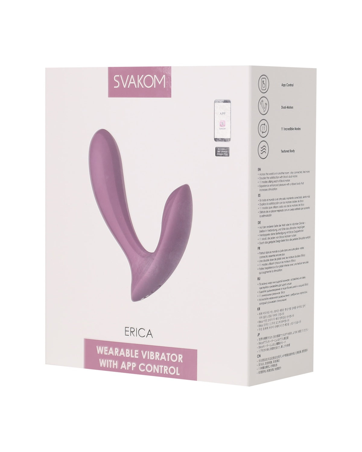Erica wyróżnia się wyjątkowo zakrzywioną główką, która precyzyjnie trafia w punkt G, zapewniając intensywne doznania wewnętrzne, podczas gdy zewnętrzny stymulator łechtaczki uzupełnia doznania. Dzięki możliwości noszenia podczas codziennych aktywności, zapewnia dyskrecję i wygodę. Połącz Erica z aplikacją mobilną SVAKOM, aby sterować nią z dowolnego miejsca na świecie, dostosować ustawienia do swoich preferencji i otworzyć drzwi do ekscytujących zabaw solo lub z partnerem.