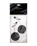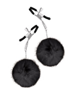 Elementy metalowe w kolorze srebrnym, pomponiki czarne.