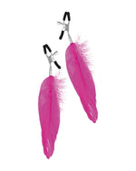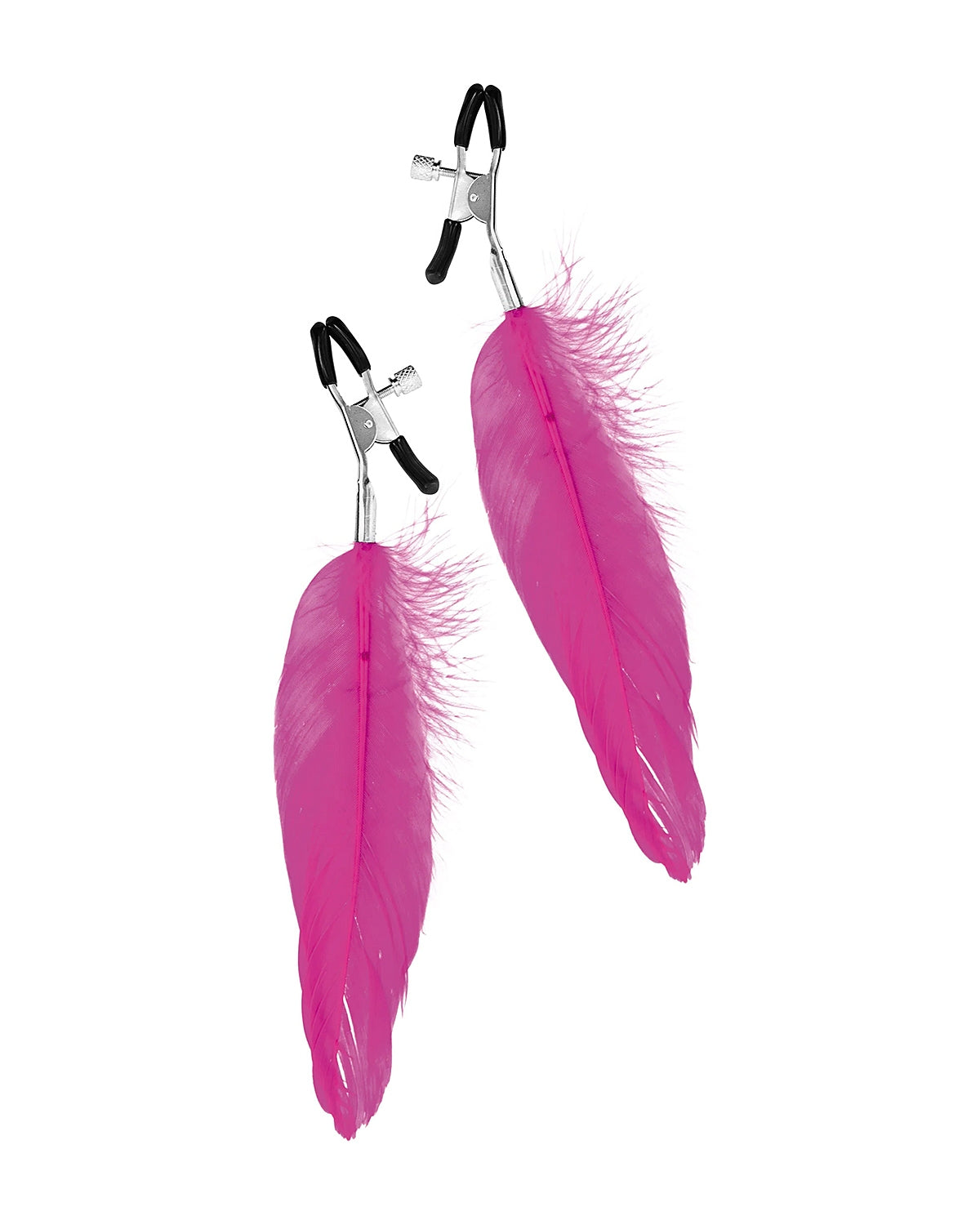 Elementy metalowe w kolorze srebrnym, pióra różowe (fuksja).