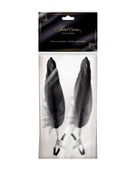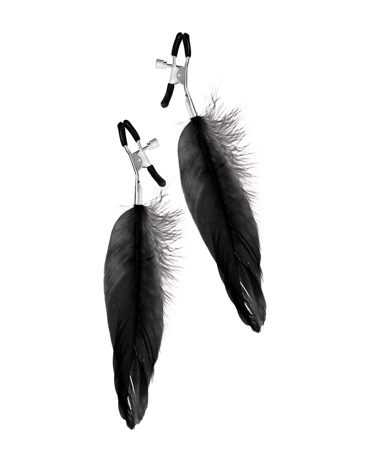 Elementy metalowe w kolorze srebrnym, pióra czarne.