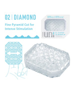 - wachlarz stymulacji: Dostępne są cztery niepowtarzalne wersje – Emerald, Diamond, Topaz i Amethyst – z których każda została zaprojektowana, aby dostarczać odmienne, dopasowane do potrzeb użytkownika wrażenia. UNI Diamond wyróżnia się specyficzną strukturą, zapewniającą niezrównane doznania.