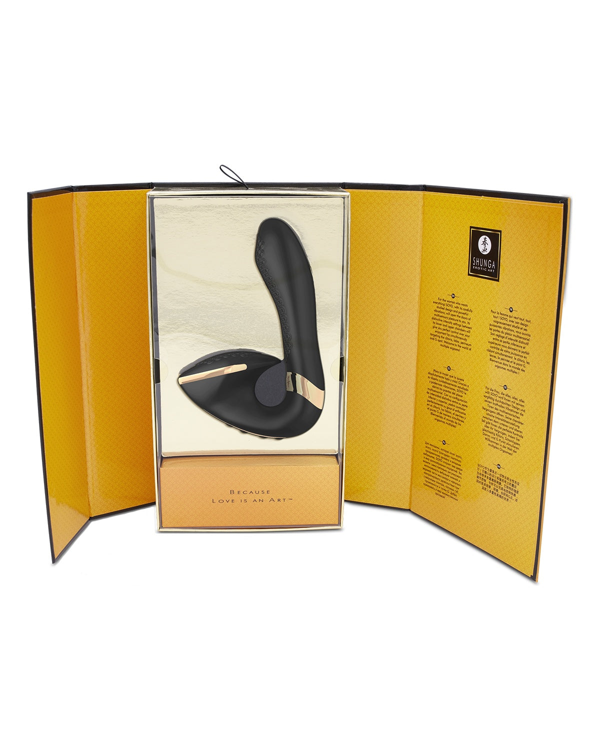 Niezwykle elegancki produkt pochodzący z nowej serii gadżetów wibrujących kanadyjskiej marki SHUNGA. Firma istnieje na rynku od 35 lat i specjalizuje się w produkcji wysokiej jakości kosmetyków intymnych, w tym olejków do masażu oraz lubrykantów.