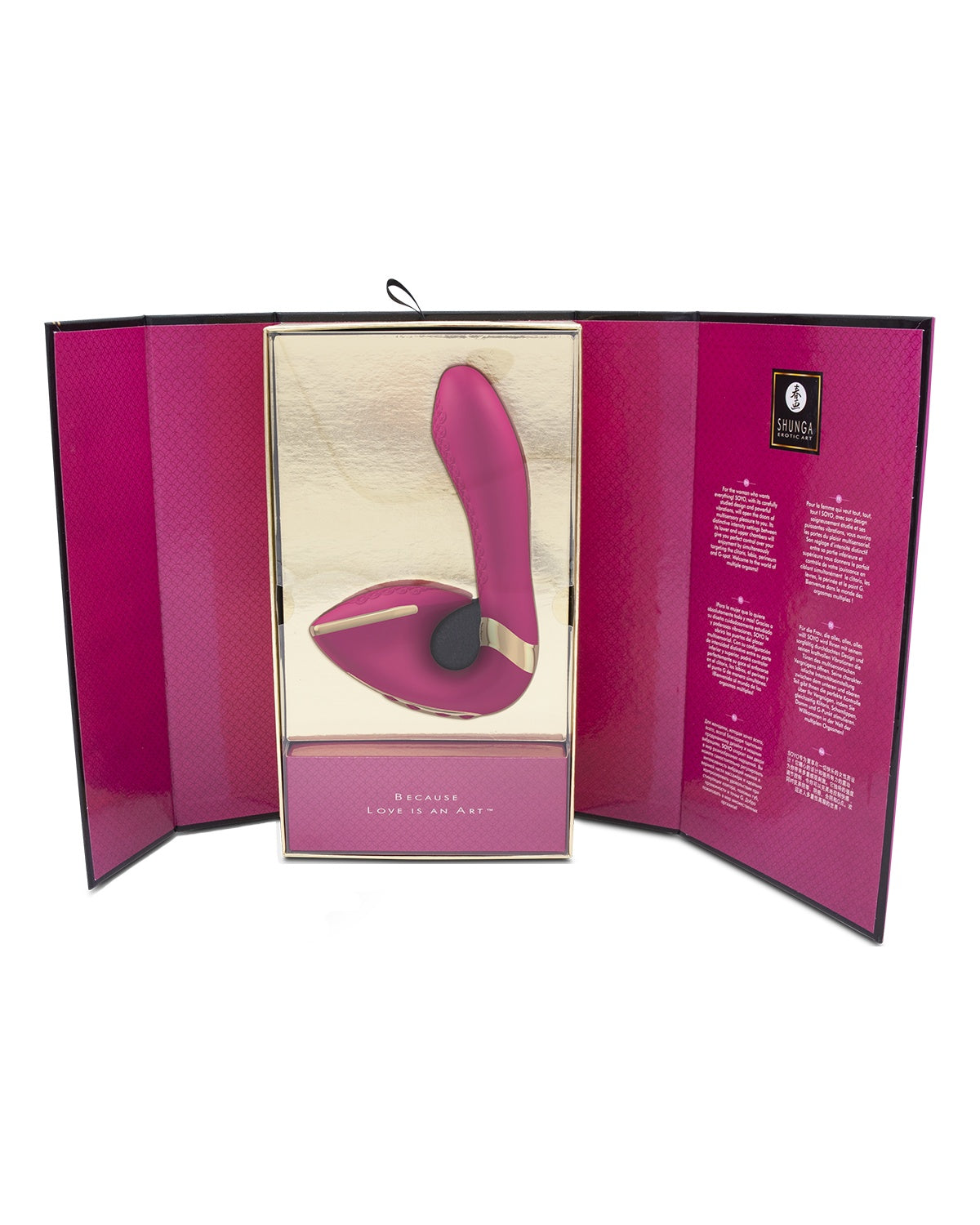 Niezwykle elegancki produkt pochodzący z nowej serii gadżetów wibrujących kanadyjskiej marki SHUNGA. Firma istnieje na rynku od 35 lat i specjalizuje się w produkcji wysokiej jakości kosmetyków intymnych, w tym olejków do masażu oraz lubrykantów.