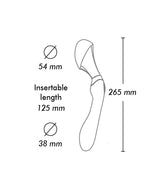 Wymiary: 27 cm x 11 cm x 3,8 cm, długość części dopochwowej 12,5 cm