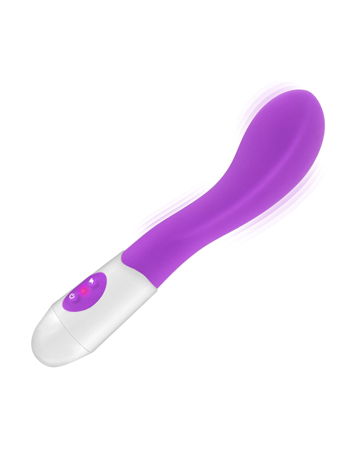 Wibrator o prostej formie z wyraźnie zaznaczoną i wygiętą główką. Kształt ergonomiczny, idealnie wymasuje wszystkie wrażliwe, kobiece strefy.