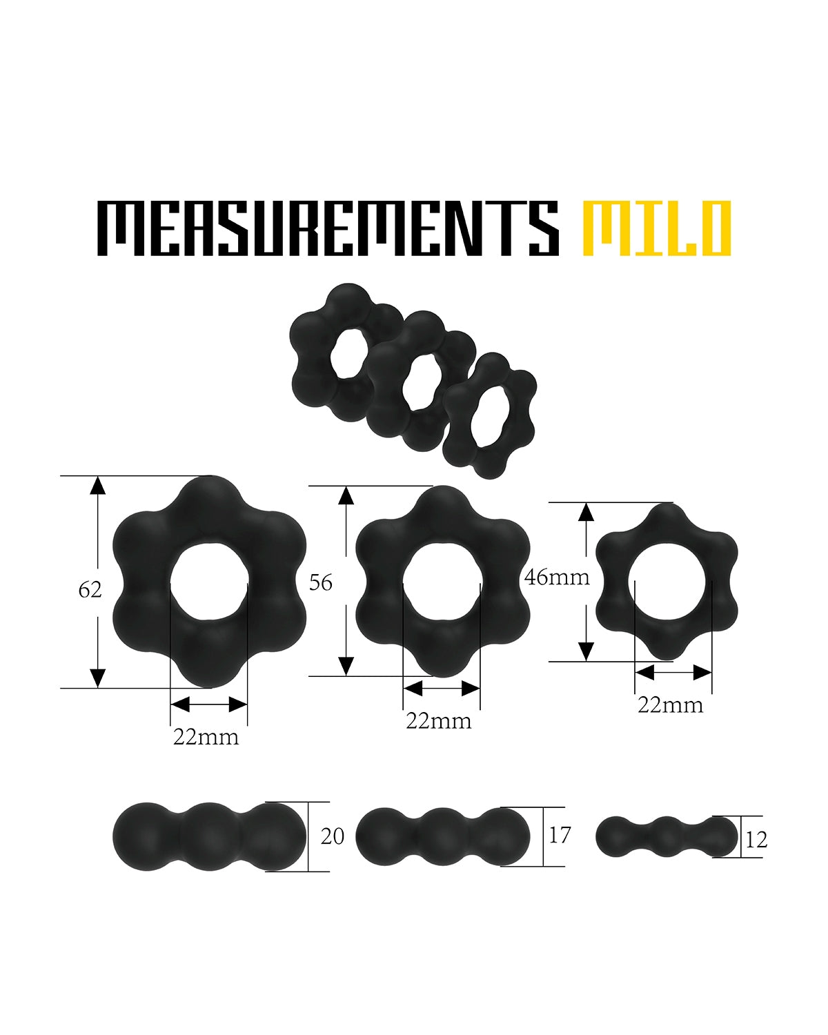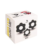 Każdy z ringów ma taką samą wyjściową średnicę wewnętrzną, ale inną grubość ścianki, dlatego jedne delikatnie obejmują penisa czy jądra, a inne mocno go ujarzmiają - w zależności od Twoich preferencji w danym dniu wybierz ten, który będzie Ci pasował.