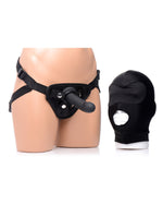 Materiał: dildo silikon, uprząż oraz maska spandex, gumka, metal.