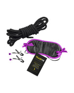 To idealna propozycja dla par, które pragną spróbować zabawy w dominację i uległość. Poczuj jak przyjemnie będziesz odczuwać bodźce gdy oczy zostaną zasłonięte, a ręce i nogi związane. Dodatkowo zaciski na sutki będą maksymalizowały doznania.