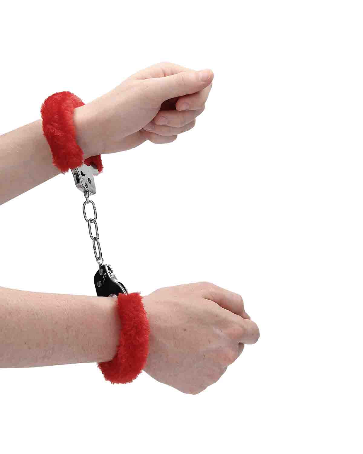 Metalowe kajdanki, które dla wygody obszyte są miękkim pluszem. Dzięki temu nie powodują otarć.