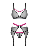 Zmysłowość i nowoczesny design w jednym! Novenes marki Obsessive to 3-częściowy komplet bielizny, który łączy prześwitującą siateczkę z eleganckimi dodatkami.